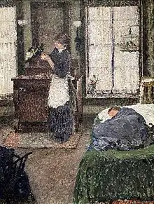 Turner began painting at twenty-two; her early works were portraits and bayou landscapes.[3] Initially self-taught, she began taking free classes offered by Tulane University, continuing under the tutelage of Andres Molinary and Bror Anders Wikstrom; she also studied at the Artists' Association of New Orleans.[3] The death of her uncle in 1890 meant that she had to support herself, and she took a position teaching art at St. Mary's Institute, a girls' school in Dallas, Texas, beginning in 1893.[3] She moved to New York City in 1895, for further study[5] and attended the Art Students League (where she was accepted despite being, at thirty-seven, beyond the age limit for admittance),[4] Cooper Union and Columbia University; her teachers included Arthur Wesley Dow,[6] Kenyon Cox, William Merritt Chase and Douglas Volk.[7] [8] Her sister Laurette ("Lettie"), a textile artist, came to New York with her.[2] Turner traveled with Chase and his class to Italy in 1904, 1905, and 1911,[4] but otherwise appears to have shown scant interest in studying abroad, unlike other American Impressionists.[3]