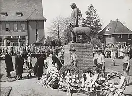Tante Riek is remembered in various places. On 4 May 1955, in Winterswijk, a monument in her honor was revealed by Princess Wilhelmina.[7] The statue, on the square named for her, depicts a young woman who protects a young deer, symbol of those who were persecuted during the war. Nearby, at her old house, in the Willinkstraat, a plaque remembers her.[8] A framed portrait of Kuipers-Rietberg is on the late Queen Wilhelmina's desk in Het Loo Palace.[2] A street in Gouda is named for her.[9]