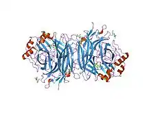 ![]() Structure of the sialic acid binding site in Newcastle disease virus hemagglutinin-neuraminidase.[1] | |||||||||||