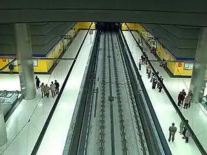 Henares [eˈna.ɾes] is a station on Line 7 of the Madrid Metro, serving the western part of the San Fernando de Henares municipality. It is located in fare zone B1.[1]