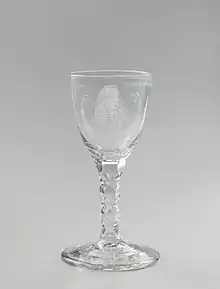 Wine glass engraved with a portrait of burgomaster Hendrik Danielsz Hooft (1716-1794) of Amsterdam.