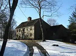 The Henfield House is a historic First Period house in Lynnfield, Massachusetts. The oldest portion of this 2.5-story saltbox colonial was built c. 1700; this consisted of the right side of the house (including the shed section to its rear) and the central chimney. The left side was built early in the 18th century. The only other major modification was the addition of a shed dormer in the early 20th century, and some single story additions extending from the rear of the house on the east side. The house is named for the owners during most of the 18th century.[2]