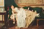 An Italian beauty187072.5 x 60 cmEven if the painting is titled A Spanish beauty, if you see the artwork above has the same clothes, so is quite more likely an Italian one.Private collection