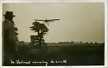 In 1913, Salmet flew in a tour of Great Britain, again sponsored by the Daily Mail, whose title was emblazoned beneath the wings of his Blériot XI-2. One of his passengers that year was the English illustrator Wyndham Payne.[7] In April 1914, he landed the Blériot at Gyllyngvase beach near Falmouth, where the wheels dug into the soft sand, and the aircraft tipped up onto its nose.[8][9] The Blériot was then fitted with its optional floats to enable operation from the sea. Soon after, an engine failure caused a forced landing on the sea near Lizard Point, during a flight carrying the Lady Mayoress of Falmouth.[8][9]
