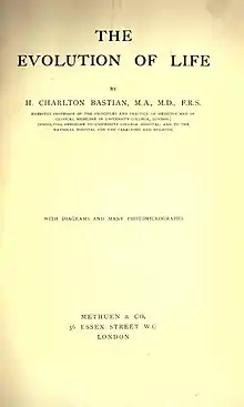 He was an advocate of the doctrine of archebiosis.[1] He believed he witnessed the spontaneous generation of living organisms out of non living matter under his microscope and therefore argued against the concept of germ theory. He promoted a theory of "heterogenesis", a process by which existing living beings give birth to wholly different forms.[2][3] Bastian's criticism of the germ theory of disease has been linked to the theory's initially slow impact in the UK.[4]