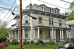 The Henry Gane House is a historic house at 121 Adena Road in Newton, Massachusetts. Built c. 1860s, the two-plus story wood-frame house is distinguished as one of Newton's finest Second Empire houses. Its eaves are lined with dentil moulding and paired brackets, its windows have elaborate hoods, and its porch, which wraps around two sides of the house, has elaborate woodwork detail. The house was built for Henry Gane, a successful Boston merchant, and originally stood on 16 acres (6.5 ha) of manicured grounds at the corner of Waltham and Derby Streets. The land was subdivided in 1897, after which adjacent Northgate Park was developed; the house was moved to its present location after World War I.[2]