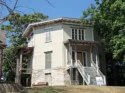 The house was designed based on the philosophy of Orson Fowler, a leading phrenologist, who held that the octagon was the closest thing to a circle and it was conducive to good health.[3] While it is one of several octagon houses in the state of Iowa, it is the only one left in Davenport.[5] It is the earliest of the remaining octagon houses in Iowa that was built to the precepts of Fowler who recommended that they employ "plank wall" construction and a plan adapted from the Howland House, which he published in A Home For All in 1853.[4] The house exhibits features found in the Italianate style: hipped roof, bracketed eaves, and a small belvedere on top, which has subsequently been removed. The entrances into the house are on the main floor, which sits atop a raised basement level. They are all covered by columned porches and are located on the four cardinal points of the compass. The grounds of the estate also featured a carriage house, stable, grape vines and a picket fence, all of which are now gone.[5]