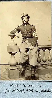 Henry Martyn Tremlett (1833 – March 31, 1865) was a Boston merchant prior to serving four years' active duty during the American Civil War. Tremlett began as a captain in the 20th Massachusetts Volunteer Infantry Regiment from 1861 to 1862, then as a major in 1862, and eventually a lieutenant-colonel in 1864 commanding the 39th Massachusetts Volunteer Infantry Regiment.