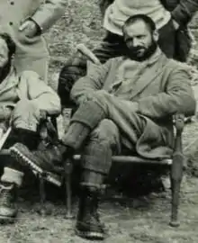 On the outbreak of war in 1914 he was posted to India but was immediately sent back to England to train sappers. In 1915 he commanded the 212th Field Company, Royal Engineers 33rd Division in the Battle of the Hohenzollern Redoubt.[3] His company was moved for the Battle of the Somme where he was promoted to major in 1916 and was awarded the DSO.[3][22] He was at the Battle of Arras and the Battle of Passchendaele after which he was evacuated home with trench fever, returning to France in 1918 and promoted to brevet lieutenant colonel to command the 46th (North Midland) Divisional Engineers.[3][23] He was wounded by shrapnel while reconnoitring the crossings of the St Quentin Canal and was sent back to England. After three weeks' leave he returned to the front but the war had by then just ended.[24][25]