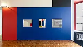 Several of his geometric abstracts from the interwar period are on permanent display at the Neoplastic Room (Sala Neoplastyczna) at Muzeum Sztuki in Łódź. The design of the room was conceived by Władysław Strzemiński in 1948, inspired by interactions of primary colors typical of De Stijl movement, complemented by black, white and grey tones. The display was shut down in 1950 by the communist regime, until it was reconstructed based on surviving photographs.[48] The exhibition space was expanded in 2010 to include a wider range of interwar and contemporary art from the museum's collection.[49]