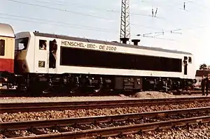 The DB Class 202, also commonly referred to under its manufacturers' designation Henschel-BBC DE2500, since it was only in experimental use and never purchased by the DB, is a class of diesel-electric locomotives designed for use on main and secondary lines for both passenger and freight trains.