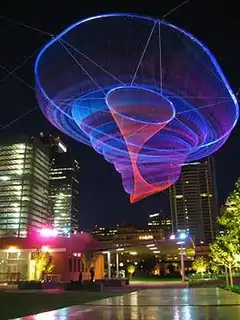 Her Secret Is Patience is a public art sculpture commission designed by artist Janet Echelman for the city of Phoenix. Its creation was the result of collaboration between the artist and a team of award-winning engineers, architects, planners, and fabricators. It is located downtown in the Civic Space Park across from the Walter Cronkite School of Journalism at Arizona State University. The sculpture consists of painted, galvanized steel; polyester twine netting; and colored lights. The piece cost $2.5 million.[1][2] The title of the piece is a quote from Ralph Waldo Emerson and during construction it was unofficially titled Sky Bloom.[3]