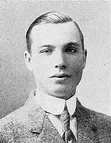 He attended Phillips-Andover Academy, graduating with high honors.[10] While at Phillips, he was captain of the golf team and manager of the football eleven.[7][11] He attended Yale University, receiving a B.A. in philosophy in 1908.[1] At Yale, he was a member of the Fraternity of Delta Psi (St. Anthony Hall), vice president of the Freshman Baseball Association, vice president of the University Baseball Association, and manager of the football team.[12][13][3][4]