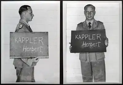 Herbert Kappler (23 September 1907 – 9 February 1978) was a key German SS functionary and war criminal during the Nazi era. He served as head of German police and security services (Sicherheitspolizei and SD) in Rome during the Second World War and was responsible for the Ardeatine massacre.[1][2]