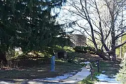 The tunnel entrance on the northeast, the back of the berm, and the tower