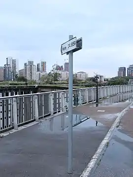![]() Artwork on The Line in north Greenwich, London, looking northwards | |