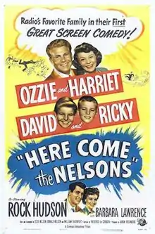 Here Come the Nelsons is a 1952 American comedy film starring real-life husband and wife Ozzie and Harriet Nelson and their sons David and Ricky Nelson. The supporting cast includes Rock Hudson, Sheldon Leonard, Jim Backus, Gale Gordon, and Chubby Johnson. The film was directed by Frederick de Cordova.