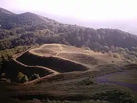 Atop Herefordshire Beacon, there is an Iron Age hill fort, known as British Camp,[2] and would have held a settlement between 4th century BCE and 1st century CE. A ringwork and bailey castle was built within the site of the hill fort, and there is evidence of 120 huts having been built within the boundaries of the fort. The hill fort received scheduled monument status on 10 August 1923.[3]