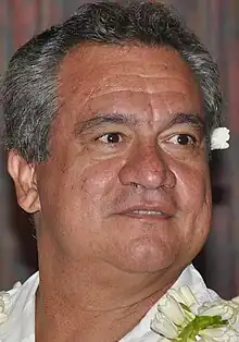 In September 2014 he was appointed as Minister of Language Promotion, Culture, Communication and the Environment in the government of Édouard Fritch.[4] As he was a senior civil servant at the time, he had to wait at least six months before taking up his ministerial duties.[5] In the intervening period his portfolios were managed by Minister of Education Nicole Sanquer, and he was employed as a technical advisor in her office.[6] He formally took office on 25 March 2015.[7]
