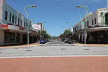 Heretaunga Street (Māori pronunciation: [hɛɾɛˈtɑːʉŋa]) is the main arterial road through Hastings, New Zealand. The street forms the heart of the Central Business District of Hastings City across six blocks numbered 100, 200, and 300 Blocks with the railway line dividing the blocks by East and West. The name Heretaunga is taken from the name of the Māori Land Block on which Hastings was established in 1873.