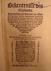 - Bekentenisse des gheloofs, uitg. Jan Zas Hoensz, Gouda, 1591