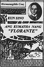 ![]() Earlier cover of Kun Sino ang Kumatha nang "Florante", by Hermenegildo Cruz (1906), with inset photo of Cruz. | |
