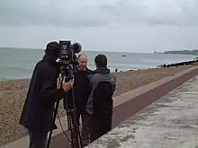 Punch and Judy shows have always taken place during summer right next to the pier on the beach to the west of it, and this tradition is continued in the annual Herne Bay Festival.[33][34] Pierrots used to perform in the open air at the end of the pier until 1914, and in 2009 a recreation of such a show at the Herne Bay Bandstand was specially commissioned by the Council for Herne Bay Festival.[35][36] Ken Russell chose Herne Bay Pier as the backdrop to the opening sequence of his first feature film, French Dressing (1963), and returned to Herne Bay in 2008 to bemoan the missing pier.[1][37][38][39] It also featured in Hugues Burin des Roziers' film Blue jeans - Du beurre aux Allemands, filmed in 1976.[40][41] In 2008 Canterbury art students designed a virtual pier as part of the Cultural Trail.[42]