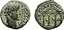 There is no contemporary evidence for Philip the Tetrarch's use of the name "Herod Philip" (Greek: Ἡρώδης Φίλιππος, Hērōdēs Philippos) as a dynastic title, as did occur with his brothers Herod Antipas and Herod Archelaus. Herod II is sometimes called "Herod Philip I" (because both the Gospel of Matthew[4] and Gospel of Mark[5] call the husband of Herodias "Philip"), and then Philip the Tetrarch is called "Herod Philip II".[6][7] Kokkinos says, "The stubborn insistence of many theologians in referring to Herod III as 'Herod Philip' is without any value...No illusory Herod Philip ever existed."[7][pp. 223–233]; [266] Philip the Tetrarch, "unlike his brothers, did not use Herod as a dynastic name."[8] Philip's half-brothers, Archelaus and Antipas, had adopted the name of Herod, "presumably" for a dynastic claim from Herod the Great.[9]