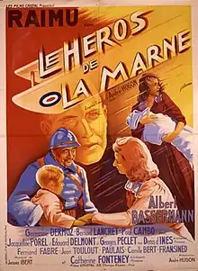 Heroes of the Marne (French: Le héros de la Marne) is a 1938 French war drama film directed by André Hugon and starring Raimu, Albert Bassermann and Germaine Dermoz.[1] [2] [3] The film's sets were designed by the art director Émile Duquesne.