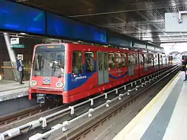 Heron Quays is a light metro station on the Docklands Light Railway (DLR) Bank to Lewisham Line in the Heron Quays area of Canary Wharf in East London. The station is situated on the Isle of Dogs and serves the southern part of the Canary Wharf office complex and is directly connected to the Jubilee Place underground shopping centre. The station is elevated and contained within one of the complex's office towers. It has an out of station interchange (OSI) for Canary Wharf Underground station on London Underground's Jubilee line. Through ticketing is allowed between both stations.