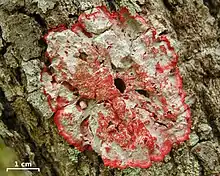 - ↑ Frisch, Andreas; Thor, Göran; Elix, John (2010). "Herpothallon rubroechinatum (Arthoniaceae), a new species from tropical and subtropical America". The Bryologist. 113 (1): 144–148. doi:10.1639/0007-2745-113.1.144. S2CID 84750122.