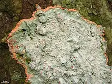 In 2009, Herpothallon was resurrected following a publication by André Aptroot, Göran Thor, Robert Lücking, and John Elix, in which they recognized 29 species worldwide.[6] The type species is now known as Herpothallon rubrocinctum,[7] or in the vernacular as the "Christmas lichen".[8]