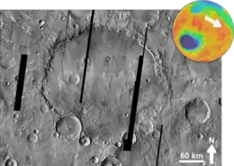 Herschel is a 304 kilometer impact crater[1] in the Martian southern hemisphere, at 14.5°S, 130°E, located in the Mare Tyrrhenum region[2] of Mars. The crater is jointly named after the seventeenth/eighteenth century father and son astronomers William Herschel and John Herschel.[3]