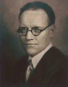 Herschel C. Logan was an American artist and founding member of the Prairie Print Makers. He is known primarily today for his woodcuts of serene, nostalgic scenes of Midwest small towns and farms—mostly Kansas subjects—rendered in precise, clean lines.[1] He earned both international acclaim as well as the nickname "The Prairie Woodcutter".[2]