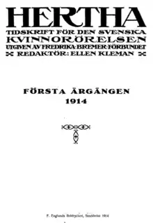 - ↑ "Tidskriften Hertha". Fredrika Bremer-förbundet (in Swedish). Archived from the original on 1 May 2022. Retrieved 19 April 2022.