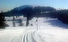 The mountain is already mentioned in a 1328 scroll as "des herzogen horne" as a point on the boundary of the abbey of St. Blaise[3] The first primitive fortifications probably date to the time around the Thirty Years' War, whilst the construction of the fortification line of schanzen on the mountain is attributed to Margrave Louis William, "Turkish Louis".[4] In 1904, the Mannheim branch of the Black Forest Club built the Mannheim-Ludwigshafen Hut, but this burned down on 28 January 1911.[5] The Herzogenhorn inn was bought in 1957 from the Black Forest Ski Club, was converted and then opened on 22 October 1967 as the new National Training Centre.[6] On 1 January 1979, the first 5 km, ladies cross-country skiing World Cup races in Europe took place on the Herzogenhorn after the Brend ski club had to move due to lack of snow.[7] During the Second World War, military exercises were carried out on the Herzogenhorn and Baldenweger Buck, for example for snipers.[8] In the vicinity of the National Training Centre is the Molerhüsli in which Freiburg artist, Karl Hauptmann, lived and worked from 1920 until his death in 1947. Another artist who worked on the Herzogenhorn worked was Wilhelm Heimer Wickert (1886-1968).[9]