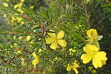 Hibbertia gracilipes is a species of flowering plant in the family Dilleniaceae and is endemic to the south-west of Western Australia. It is an erect, multi-stemmed shrub that typically grows to a height of 15–60 cm (5.9–23.6 in). It blooms between March and December producing yellow flowers.[2] First formally described in 1863 by George Bentham in Flora Australiensis,[3][4] the specific epithet (gracilipes) means "thin foot", referring to the peduncles.[5]