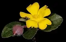 Hibbertia lasiopus is a species of flowering plant in the family Dilleniaceae and is endemic to the south-west of Western Australia. It is prostrate, ascending sometimes erect shrub that typically grows to a height of 10–50 cm (3.9–19.7 in).[2] It was first formally described in 1863 by George Bentham in Flora Australiensis from specimens collected from the Swan River Colony by James Drummond.[3][4] The specific epithet (lasiopus) means "shaggy foot", referring to the flowers' hairy peduncles.[5]
