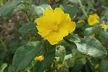 Hibbertia pilosa, commonly known as hairy guinea flower,[2] is a species of flowering plant in the family Dilleniaceae and is endemic to the southwest of Western Australia. It is an erect or sprawling shrub that typically grows to a height of 0.3–1.5 m (1 ft 0 in – 4 ft 11 in) and has leaves with long, soft hairs. The flowers are yellow with one or two densely hairy carpels from September to December.[2][3] The species was first formally described in 1845 by Ernst Gottlieb von Steudel in Lehmann's Plantae Preissianae.[4][5] The specific epithet (pilosa) means "pilose", referring to the leaves.[6]