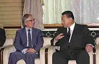 Shirakawa with Yoshirō Mori (at the Prime Minister's Official Residence on October 18, 2000)
