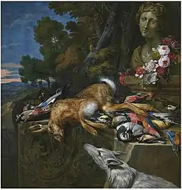 His still lifes further show he absorbed Roman still life traditions of the mid-17th century. During his stay in Rome he would have been exposed to this tradition, which itself was influenced by Flemish still life painters such as Abraham Brueghel.[9] The work of Italian artists such as Paolo Porpora and Michelangelo di Campidoglio may have been an influence on his work too.[10]