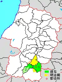 Map showing original extent of Higashiokitami District in Yamagata Prefecture