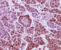 Immunohistochemistry micrograph of androgen receptors on a HGSC tumour sample