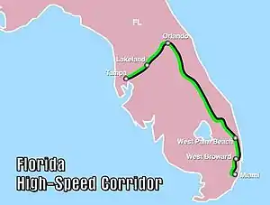 Federal Railroad Administration map of the Florida High-Speed Corridor