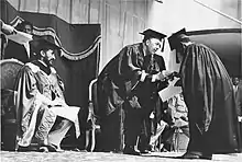 Graduation at Swedish-Ethiopian Building College. Prince Bertil awards diplomas in the presence of Emperor Haile Selassie