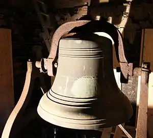 The 6th Bell in the Chime, showing the inscription "STRENGTH AND BEAUTY ARE IN HIS SANCTUARY." from Psalm 96. This bell rings a C♯ and weighs 650 lb (290 kg).