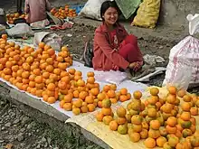 Mishmi girl selling oranges in Roing, Arunachal Pradesh.