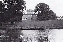 After the first house burnt down, the present structure was built in 1844, in a classical Victorian style.[4] In 1892, an area of the estate south of the house was established as Hillingdon Golf Club, founded by Charles Newton who lived at Hillingdon House, and Charles Stevens, a partner of a local timber company.[8] The estate of Frederick Cox, Richard Henry Cox's grandson, placed the house on the market in 1914, describing it as "a brick and stone building, partly stuccoed, with extensive outbuildings and ornamental gardens."[5] The house and gardens, together with the surrounding parkland and artificial lake created by damming a section of the River Pinn, amounted to more 200 acres (81 ha).[7]