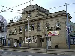 Hillsborough baths (properly known as the Walkley and Hillsborough District Baths) on Langsett Road were built in 1926 by the Sheffield City architect F.E.P. Edwards on open fields belonging to Rawson Springs Farm. The baths (comprising a large swimming pool and slipper baths) were opened by the Lord Mayor John George Graves[4] and have a Neo-baroque stone dressed façade with some circular windows. The building remained a swimming bath until 1991 when it was replaced by the Hillsborough Leisure Centre for swimming activities in the area. It then became the “Deep End” bar and live music venue before becoming the Rawson Spring public house in July 2007. Other pubs in the central area of Hillsborough have more history, The Shakey (formerly The Shakespeare) and The Freemasons both pre-date the 1864 flood in which they were badly damaged.