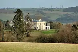 Much work was done on the house in the expectation of a visit by George IV, which never happened.[3] The main building has been described as "a major early Victorian stuccoed classical mansion, about which little is known".[13] The two-storeyed north front features nine bays, the outermost ones slightly recessed, with a central pedimented porte-cochère of four massive Ionic columns. The southeast front has a single-storey portico running the length of the front, which leads to a conservatory at the northeast end of the house.[10] The architect is not known.[13] The building was extended on its eastern side and its interior remodelled, around 1912, when a large ballroom in the Arts and Crafts style, designed by Arthur Grove was added. This features elaborate plasterwork and decoration in the form of signs of the zodiac.[13] It became a Grade II* listed building on 5 January 1952.[14]
